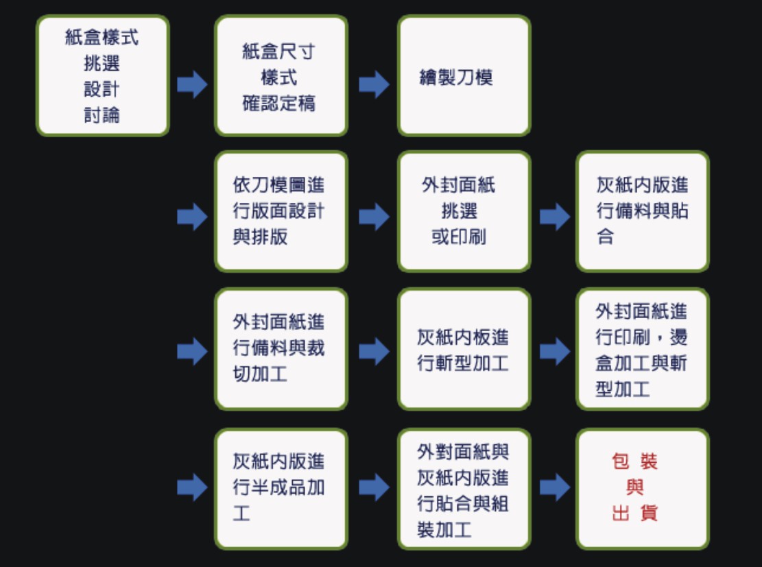 首頁/產業資訊訊息列表/手工紙盒製作簡單流程圖 手工紙盒製作簡單流程圖 手工紙盒製作簡單流程圖 因手工紙盒製作與一般彩盒製作流程略有所不同,且需注意事項也較為複雜,故提供各位朋友簡易的手工紙盒流程圖表給予參考。 更可由圖表中發現初期的紙盒確認就佔了蠻多時間,因要確保正式量產時不致發生嚴重問題,而造成完成品的缺陷和破壞紙盒優良質感。 所以我們情願多花的時間不厭其煩的一直與客戶確認,就是確保日後所衍生的一切問題,也多了很多一般彩盒製作所沒有的程序。 詢價留言 您好,如有任何詢價需求,請善用這裡的【詢價留言】我們在收到您的留言時,會盡快處理及回覆! 詢價需求 需求說明 認證碼 同步成為台灣黃頁詢價供應商。 公司名稱統編 姓名電話 e-mail To: 閎康紙盒 Email:h*a*@hoka.com.tw 詢價回覆率:83% 送出詢價